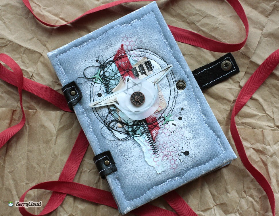Ranger, краски 13arts, штамп Prima, переплетный картон, ткань Tilda, нитки,